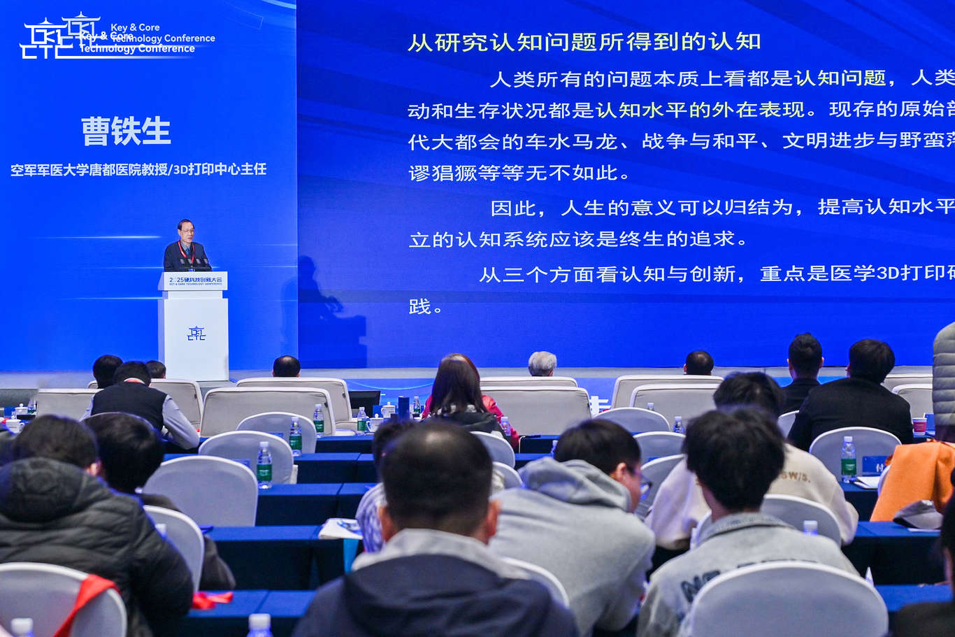 空军军医大学唐都医院曹铁生教授围绕《认知与创新-医学3D打印研究的实践》带来精彩分享。通过创新实践提升认知的主题。结合自身经历,如颠覆传统超声成像理论、发现广义帕斯卡定律,重点展示了其团队在医学3D打印领域的开创性工作。他们成功完成了全球首例3D打印钛合金胸骨植入手术,并创新研发出用于治疗“胡桃夹综合征”的微创支架,吸引了国际患者前来求医。这些从零到一的突破,不仅解决了临床重大难题,拯救了患者生命与家庭,更强有力地证明了:基于扎实理论的创新实践,是提升认知、推动医学进步的重要途径,也预示着3D打印技术在医学领域拥有无限广阔的未来。