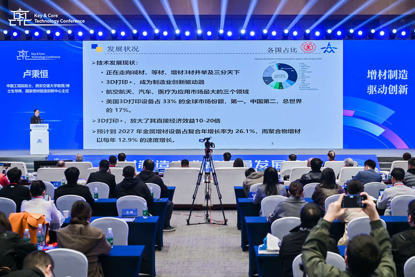 中国工程院院士、国家增材制造创新中心主任卢秉恒院士在致辞中首先对与会嘉宾表示欢迎,并高度肯定了“硬科技”概念的价值与西安坚实的产业、科研基础。指出增材制造是驱动制造业创新的核心力量,当前产业发展势头强劲,增速已位居新质生产力阵营的前列,展现了巨大的市场活力与潜力。号召与会者通过此次大会深入交流,共同推动增材制造技术在高端装备、医疗等领域的应用,促进其在西安、陕西乃至全国的蓬勃发展,为我国建设科技强国、制造强国的宏伟目标贡献力量。